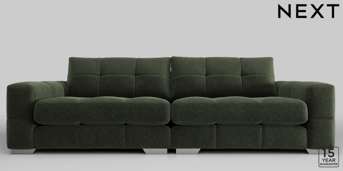 7.2.10 Brooke Deep Sit 4 Seater Large Sofa Boucle Chenille Dark Moss Green Large Square Angle - Chrome Metal | Made Click here to use our website with more accessibility support, for example screen readers