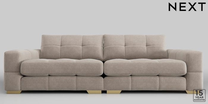 7.2.10 Brooke Deep Sit 4 Seater Large Sofa Boucle Chenille Light Natural Large Square Angle - Brushed Brass | Made Click here to use our website with more accessibility support, for example screen readers