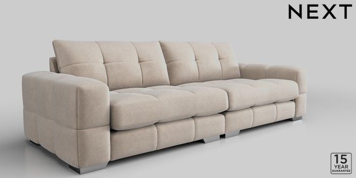 7.2.10 Brooke Deep Sit 4 Seater Large Sofa Boucle Chenille Oyster Large Square Angle - Chrome Metal | Made Click here to use our website with more accessibility support, for example screen readers