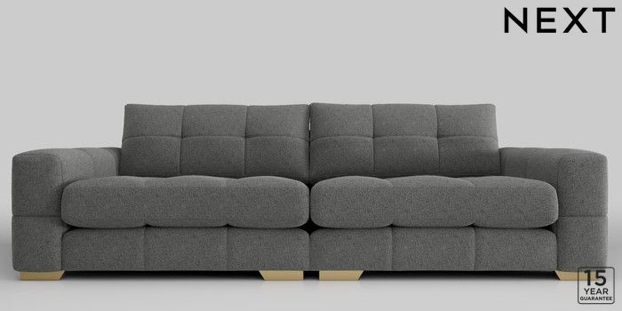 7.2.10 Brooke Deep Sit 4 Seater Large Sofa Chunky Chenille Dark Grey Large Square Angle - Brushed Brass | Made Click here to use our website with more accessibility support, for example screen readers