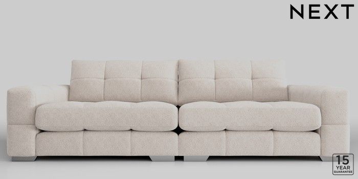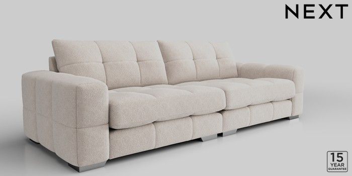 7.2.10 Brooke Deep Sit 4 Seater Large Sofa Chunky Chenille Oyster Large Square Angle - Chrome Metal | Made Click here to use our website with more accessibility support, for example screen readers