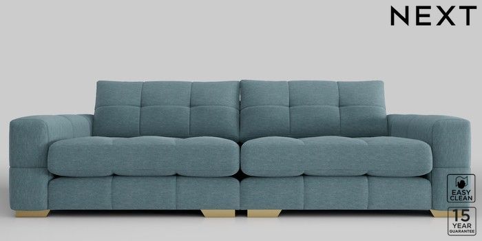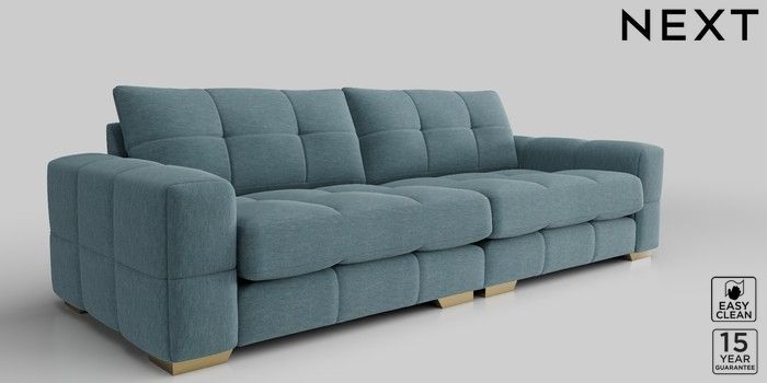 7.2.10 Brooke Deep Sit 4 Seater Large Sofa Fine Chenille Easy Clean Mid Blue Large Square Angle - Brushed Brass | Made Click here to use our website with more accessibility support, for example screen readers