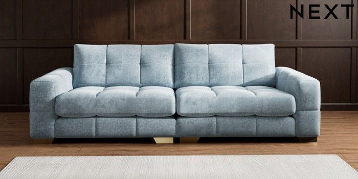 7.2.10 Brooke Deep Sit 4 Seater Large Sofa Plush Chenille Light Blue Large Square Angle - Brushed Brass | Made Click here to use our website with more accessibility support, for example screen readers