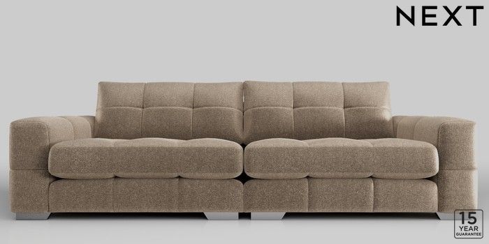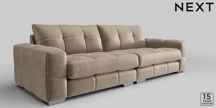 7.2.10 Brooke Deep Sit 4 Seater Large Sofa Plush Chenille Mid Natural Large Square Angle - Chrome Metal | Made Click here to use our website with more accessibility support, for example screen readers