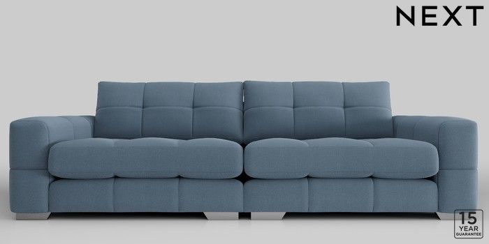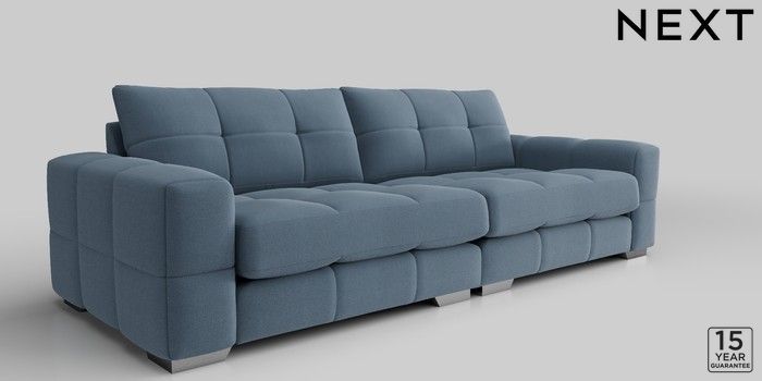 7.2.10 Brooke Deep Sit 4 Seater Large Sofa Relaxed Linen Look Mid Blue Large Square Angle - Chrome Metal | Made Click here to use our website with more accessibility support, for example screen readers