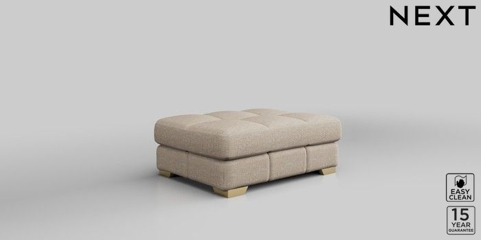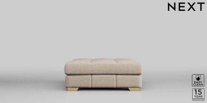 7.2.10 Brooke Deep Sit Footstool Boucle Weave Easy Clean Dark Natural Square Angle - Brushed Brass | Made Click here to use our website with more accessibility support, for example screen readers