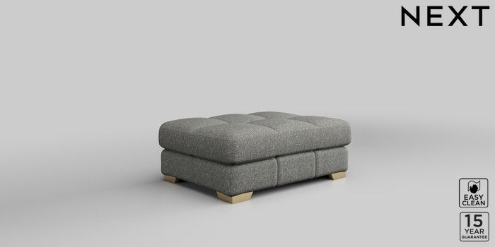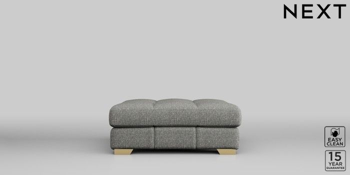 7.2.10 Brooke Deep Sit Footstool Chunky Boucle Easy Clean Mid Grey Square Angle - Brushed Brass | Made Click here to use our website with more accessibility support, for example screen readers