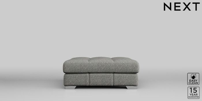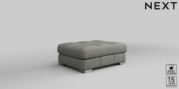 7.2.10 Brooke Deep Sit Footstool Chunky Boucle Easy Clean Mid Grey Square Angle - Chrome Metal | Made Click here to use our website with more accessibility support, for example screen readers