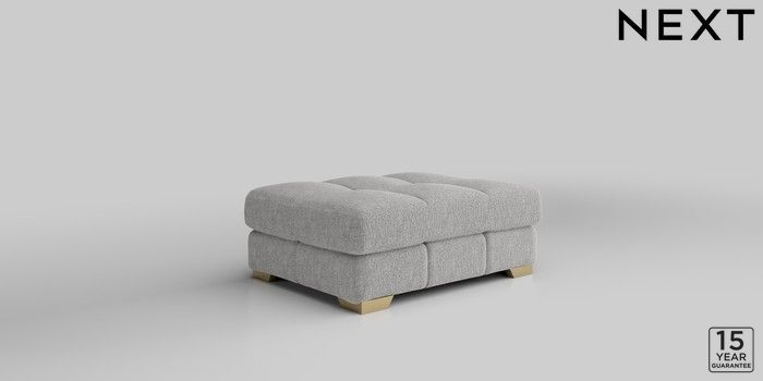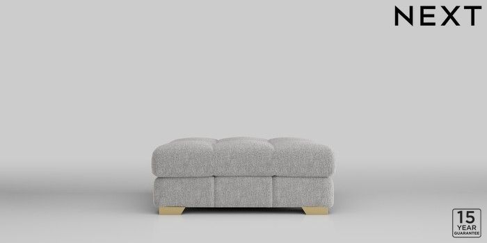 7.2.10 Brooke Deep Sit Footstool Chunky Chenille Light Grey Square Angle - Brushed Brass | Made Click here to use our website with more accessibility support, for example screen readers