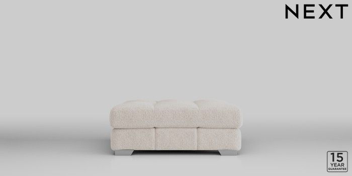 7.2.10 Brooke Deep Sit Footstool Chunky Chenille Oyster Square Angle - Chrome Metal | Made Click here to use our website with more accessibility support, for example screen readers