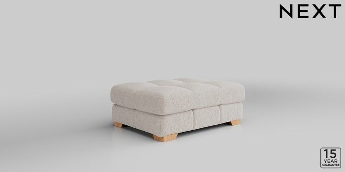 7.2.10 Brooke Deep Sit Footstool Chunky Chenille Oyster Square Angle - Light | Made Click here to use our website with more accessibility support, for example screen readers