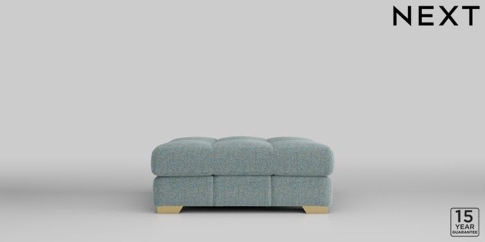 7.2.10 Brooke Deep Sit Footstool Chunky Marl Mid Blue Square Angle - Brushed Brass | Made Click here to use our website with more accessibility support, for example screen readers
