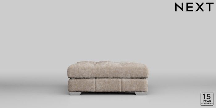 7.2.10 Brooke Deep Sit Footstool Distressed Velour Mid Natural Square Angle - Chrome Metal | Made Click here to use our website with more accessibility support, for example screen readers