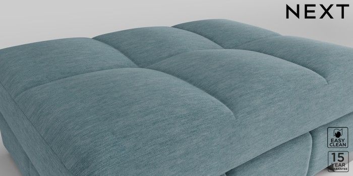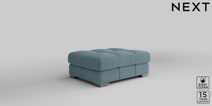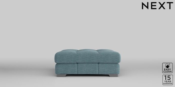 7.2.10 Brooke Deep Sit Footstool Fine Chenille Easy Clean Mid Blue Square Angle - Gunmetal | Made Click here to use our website with more accessibility support, for example screen readers