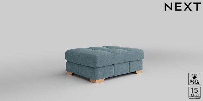 7.2.10 Brooke Deep Sit Footstool Fine Chenille Easy Clean Mid Blue Square Angle - Light | Made Click here to use our website with more accessibility support, for example screen readers