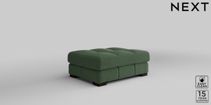 7.2.10 Brooke Deep Sit Footstool Fine Chenille Easy Clean Mid Khaki Green Square Angle - Dark | Made Click here to use our website with more accessibility support, for example screen readers