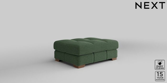 7.2.10 Brooke Deep Sit Footstool Fine Chenille Easy Clean Mid Khaki Green Square Angle - Mid | Made Click here to use our website with more accessibility support, for example screen readers