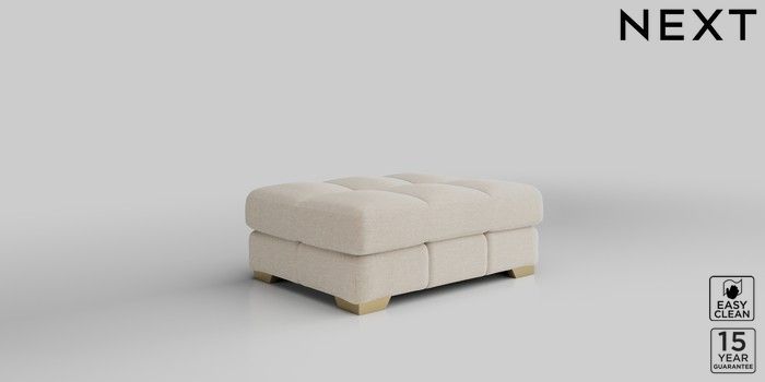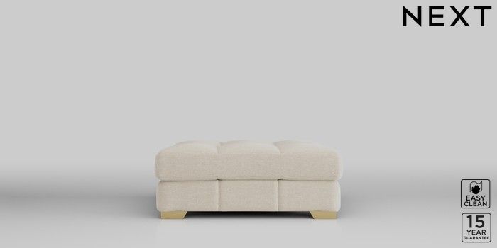 7.2.10 Brooke Deep Sit Footstool Fine Chenille Easy Clean Oyster Square Angle - Brushed Brass | Made Click here to use our website with more accessibility support, for example screen readers