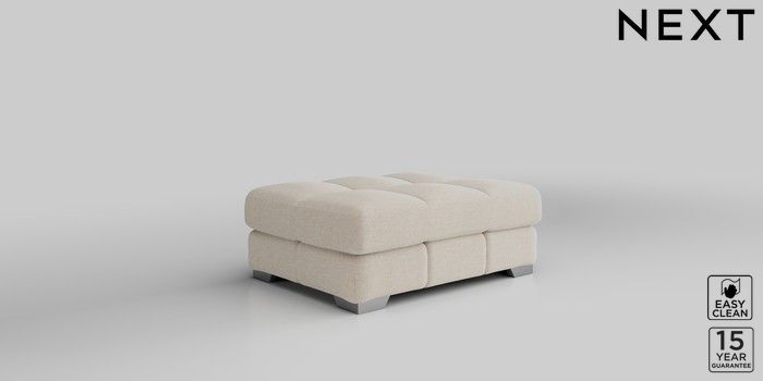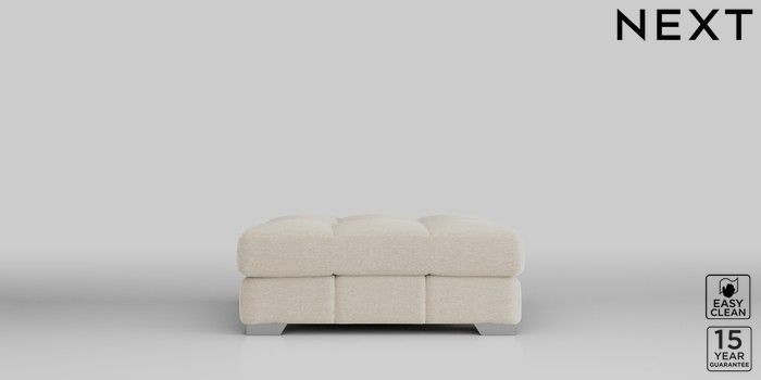 7.2.10 Brooke Deep Sit Footstool Fine Chenille Easy Clean Oyster Square Angle - Chrome Metal | Made Click here to use our website with more accessibility support, for example screen readers