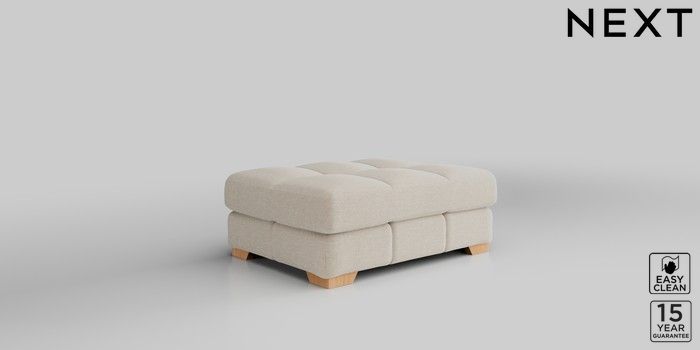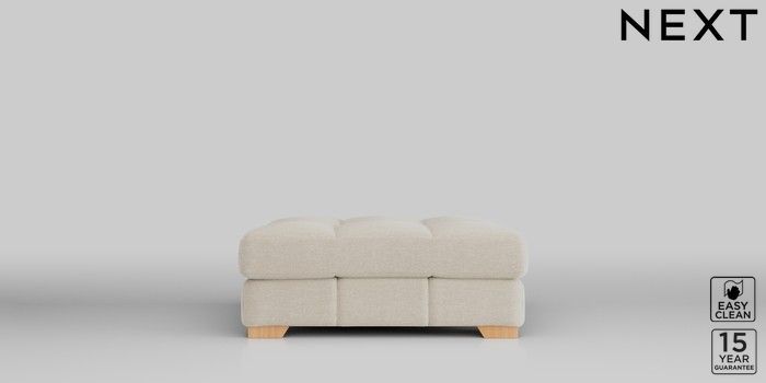 7.2.10 Brooke Deep Sit Footstool Fine Chenille Easy Clean Oyster Square Angle - Light | Made Click here to use our website with more accessibility support, for example screen readers