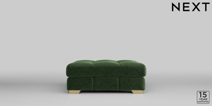 7.2.10 Brooke Deep Sit Footstool Luxe Chenille Dark Green Square Angle - Brushed Brass | Made Click here to use our website with more accessibility support, for example screen readers