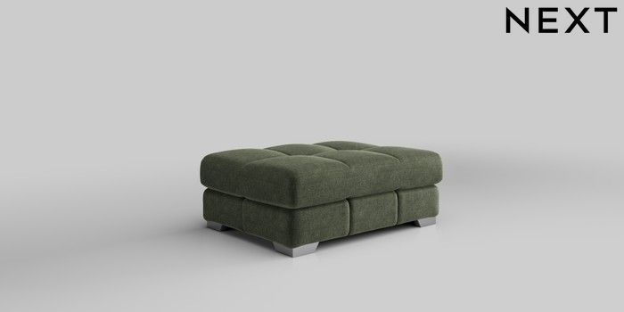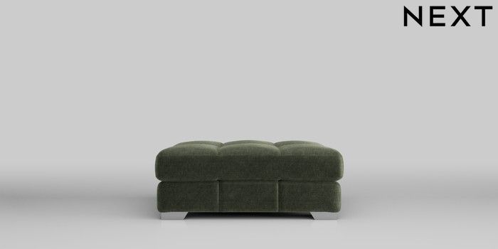 7.2.10 Brooke Deep Sit Footstool Luxe Chenille Mid Green Square Angle - Chrome Metal | Made Click here to use our website with more accessibility support, for example screen readers