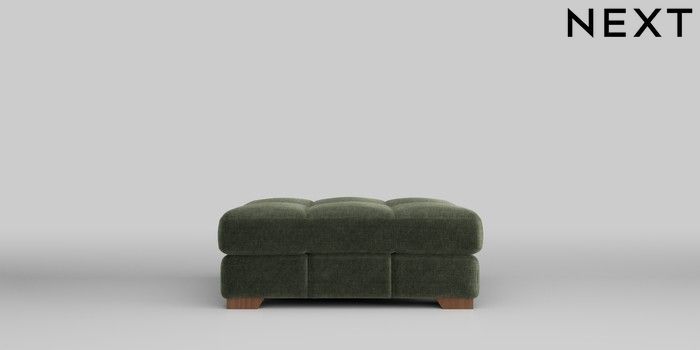 7.2.10 Brooke Deep Sit Footstool Luxe Chenille Mid Green Square Angle - Mid | Made Click here to use our website with more accessibility support, for example screen readers