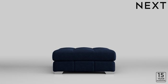 7.2.10 Brooke Deep Sit Footstool Luxe Chenille Navy Blue Square Angle - Chrome Metal | Made Click here to use our website with more accessibility support, for example screen readers