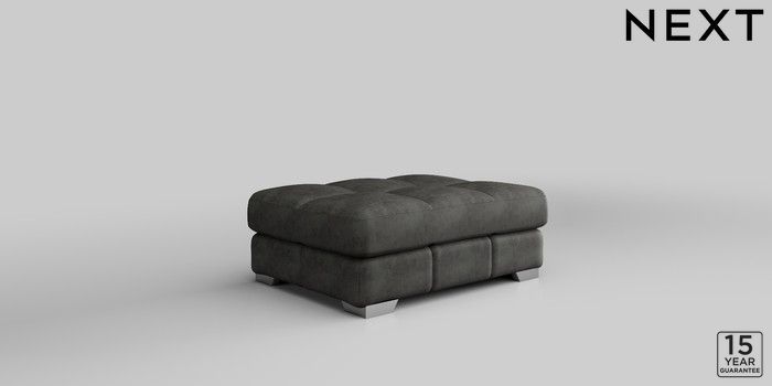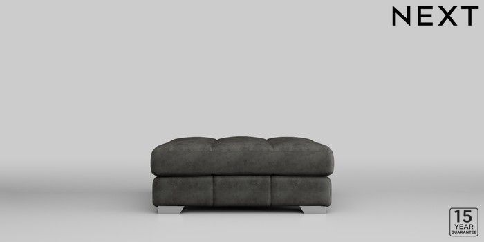 7.2.10 Brooke Deep Sit Footstool Monza Faux Leather Easy Clean Dark Grey Square Angle - Chrome Metal | Made Click here to use our website with more accessibility support, for example screen readers