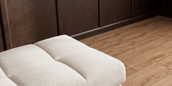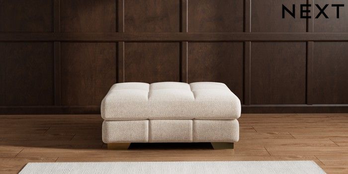 7.2.10 Brooke Deep Sit Footstool Multi Weave Mid Natural Square Angle - Brushed Brass | Made Click here to use our website with more accessibility support, for example screen readers