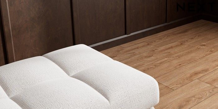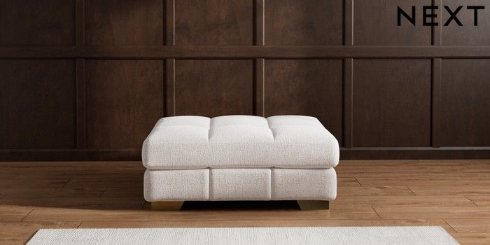 7.2.10 Brooke Deep Sit Footstool Multi Weave Oyster Square Angle - Brushed Brass | Made Click here to use our website with more accessibility support, for example screen readers