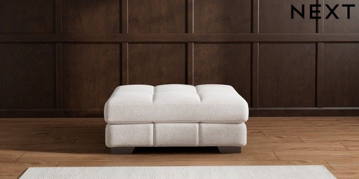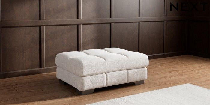 7.2.10 Brooke Deep Sit Footstool Multi Weave Oyster Square Angle - Gunmetal | Made Click here to use our website with more accessibility support, for example screen readers