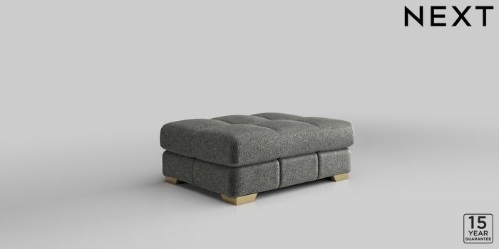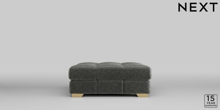 7.2.10 Brooke Deep Sit Footstool Plush Chenille Dark Grey Square Angle - Brushed Brass | Made Click here to use our website with more accessibility support, for example screen readers
