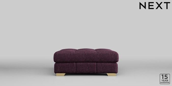 7.2.10 Brooke Deep Sit Footstool Plush Chenille Dark Plum Purple Square Angle - Brushed Brass | Made Click here to use our website with more accessibility support, for example screen readers