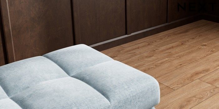 7.2.10 Brooke Deep Sit Footstool Plush Chenille Light Blue Square Angle - Gunmetal | Made Click here to use our website with more accessibility support, for example screen readers
