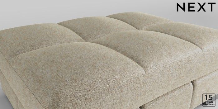 7.2.10 Brooke Deep Sit Footstool Plush Chenille Light Natural Square Angle - Chrome Metal | Made Click here to use our website with more accessibility support, for example screen readers