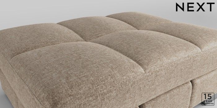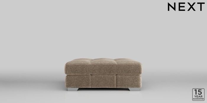 7.2.10 Brooke Deep Sit Footstool Plush Chenille Mid Natural Square Angle - Chrome Metal | Made Click here to use our website with more accessibility support, for example screen readers