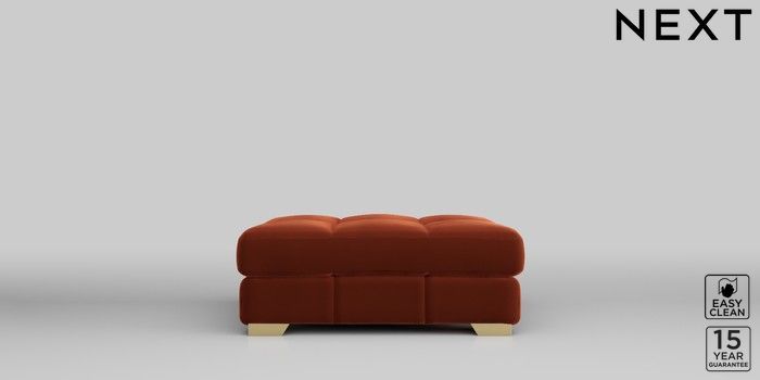 7.2.10 Brooke Deep Sit Footstool Plush Velvet Easy Clean Ginger Orange Square Angle - Brushed Brass | Made Click here to use our website with more accessibility support, for example screen readers