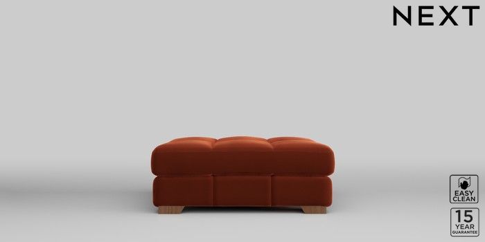 7.2.10 Brooke Deep Sit Footstool Plush Velvet Easy Clean Ginger Orange Square Angle - Mid | Made Click here to use our website with more accessibility support, for example screen readers