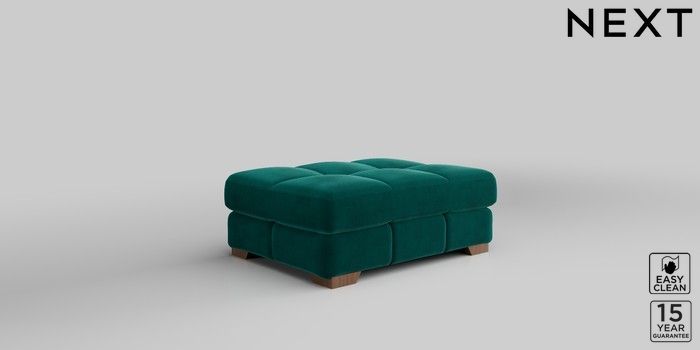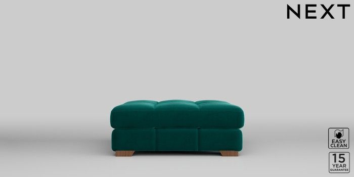 7.2.10 Brooke Deep Sit Footstool Plush Velvet Easy Clean Juniper Green Square Angle - Mid | Made Click here to use our website with more accessibility support, for example screen readers