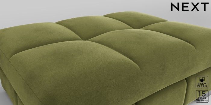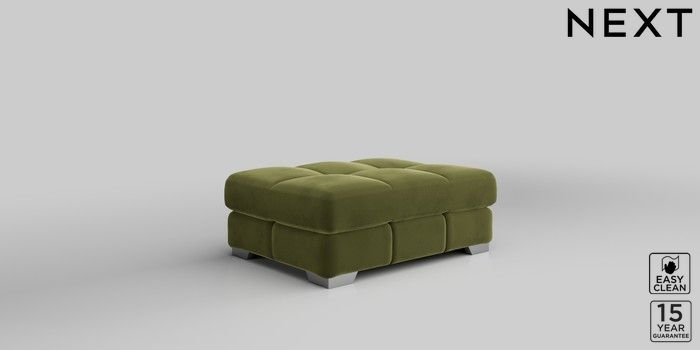 7.2.10 Brooke Deep Sit Footstool Plush Velvet Easy Clean Mid Olive Green Square Angle - Chrome Metal | Made Click here to use our website with more accessibility support, for example screen readers