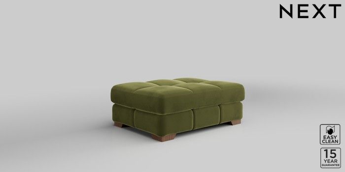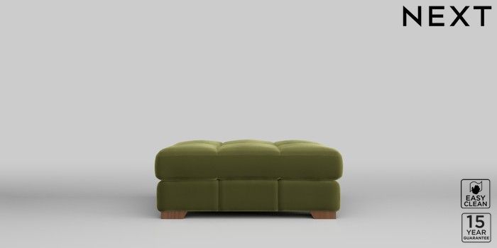 7.2.10 Brooke Deep Sit Footstool Plush Velvet Easy Clean Mid Olive Green Square Angle - Mid | Made Click here to use our website with more accessibility support, for example screen readers
