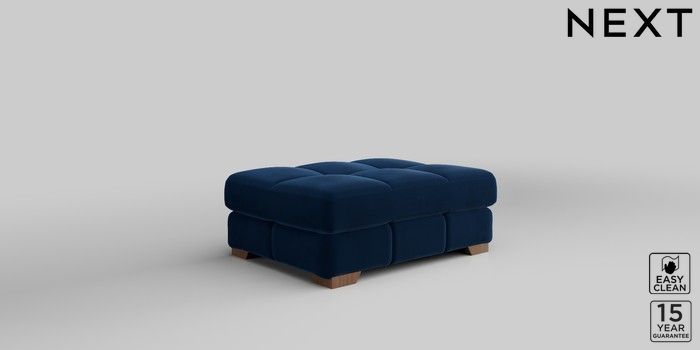 7.2.10 Brooke Deep Sit Footstool Plush Velvet Easy Clean Navy Blue Square Angle - Mid | Made Click here to use our website with more accessibility support, for example screen readers