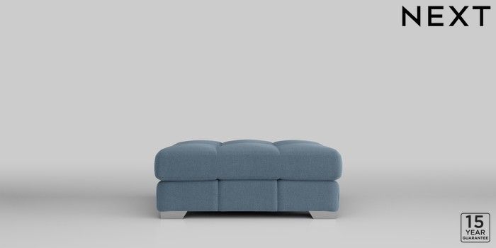 7.2.10 Brooke Deep Sit Footstool Relaxed Linen Look Mid Blue Square Angle - Chrome Metal | Made Click here to use our website with more accessibility support, for example screen readers