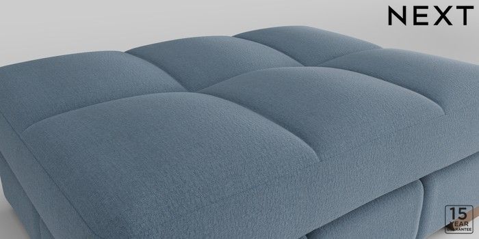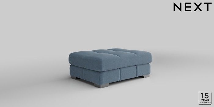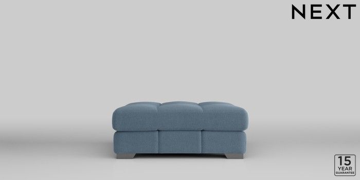 7.2.10 Brooke Deep Sit Footstool Relaxed Linen Look Mid Blue Square Angle - Gunmetal | Made Click here to use our website with more accessibility support, for example screen readers