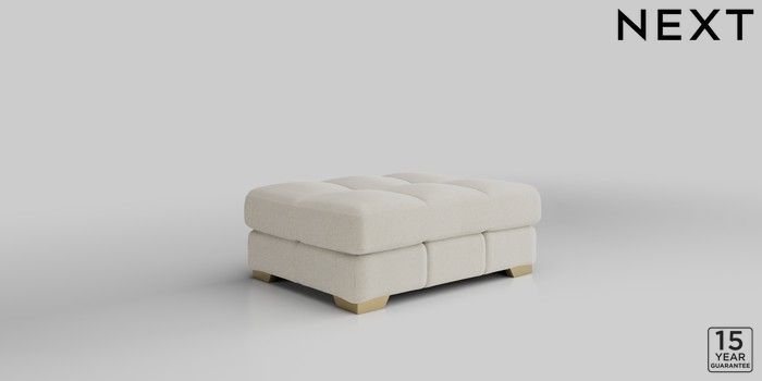 7.2.10 Brooke Deep Sit Footstool Relaxed Linen Look Oyster Square Angle - Brushed Brass | Made Click here to use our website with more accessibility support, for example screen readers