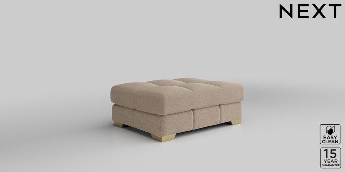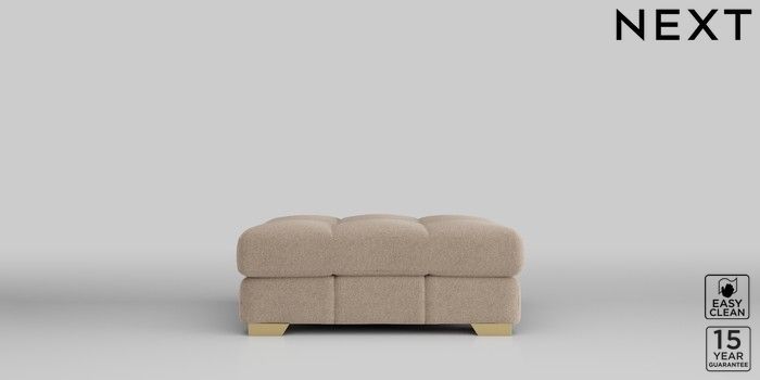 7.2.10 Brooke Deep Sit Footstool Tweedy Blend Easy Clean Light Dove Natural Square Angle - Brushed Brass | Made Click here to use our website with more accessibility support, for example screen readers
