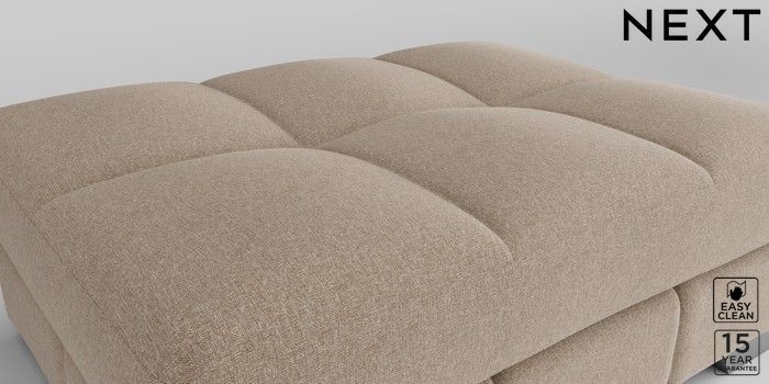 7.2.10 Brooke Deep Sit Footstool Tweedy Blend Easy Clean Light Dove Natural Square Angle - Chrome Metal | Made Click here to use our website with more accessibility support, for example screen readers
