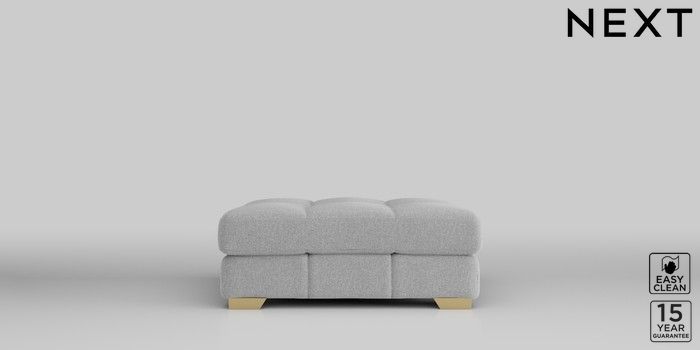 7.2.10 Brooke Deep Sit Footstool Tweedy Blend Easy Clean Light Silver Grey Square Angle - Brushed Brass | Made Click here to use our website with more accessibility support, for example screen readers