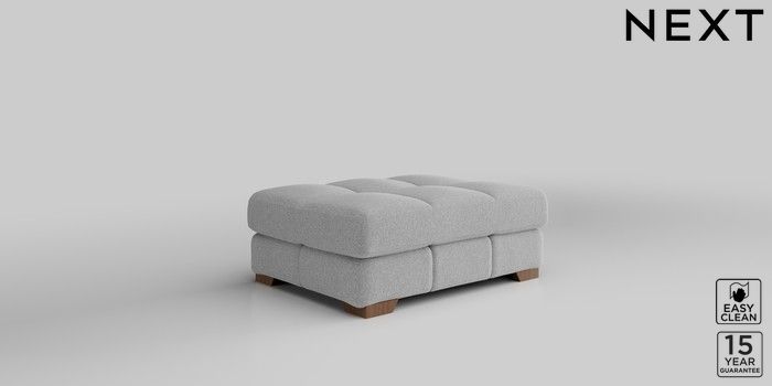 7.2.10 Brooke Deep Sit Footstool Tweedy Blend Easy Clean Light Silver Grey Square Angle - Mid | Made Click here to use our website with more accessibility support, for example screen readers